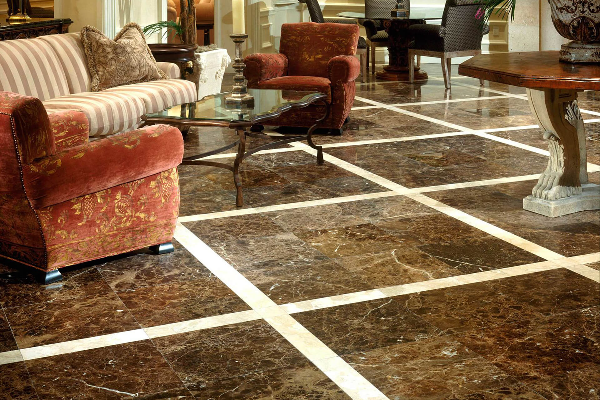 Otro factor destacable de este mármol, es la posibilidad de combinarlo con otros materiales de distintas tonalidades, logrando así ambientes distintos. Por ejemplo, si buscamos un ambiente relajado podemos combinar el marrón emperador con un material de tonos crema.
