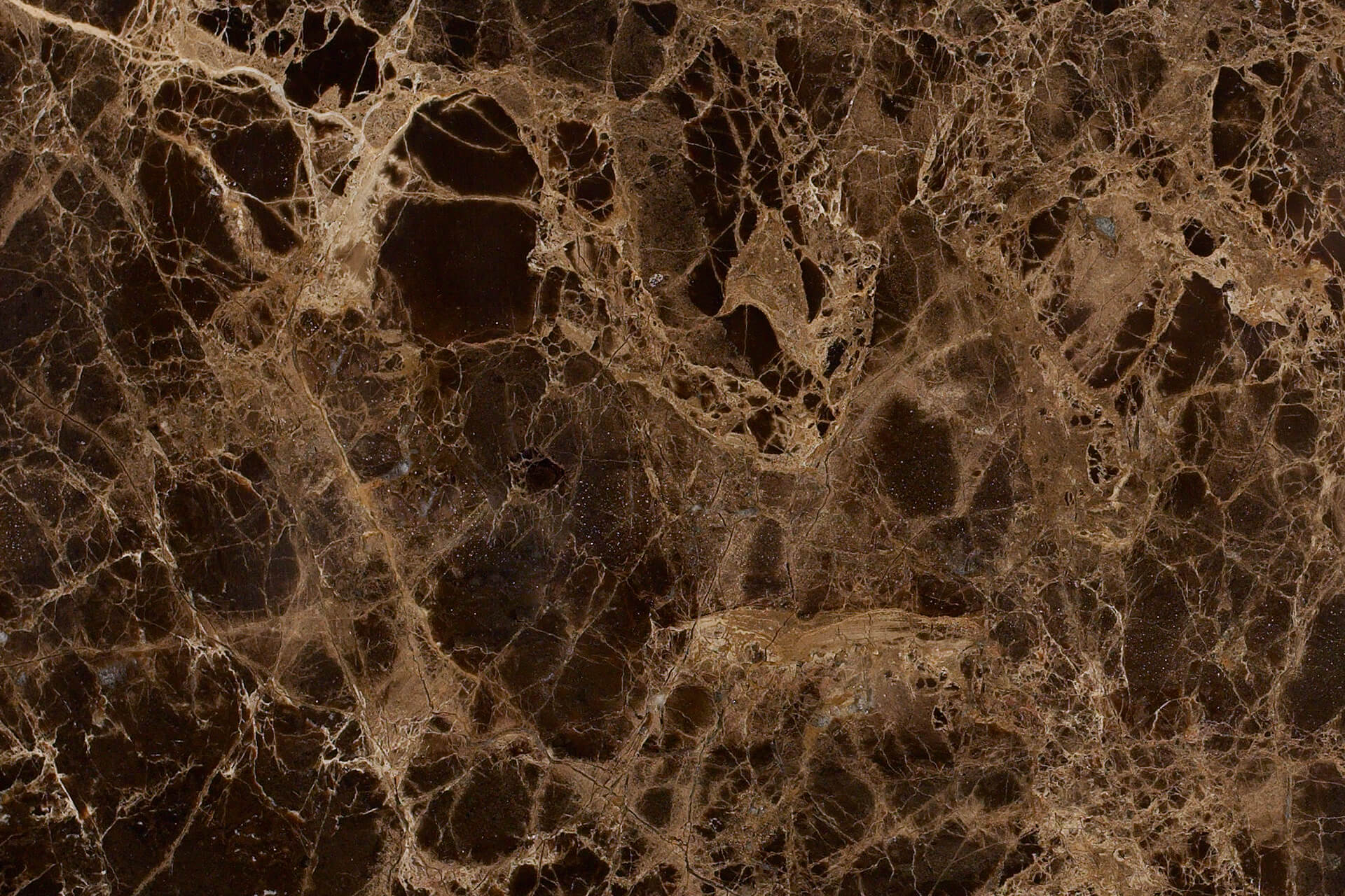 Visualmente el Marrón Emperador llama poderosamente la atención por ser un mármol marrón oscuro con vetas claras que recorren todo el material sin criterio alguno.